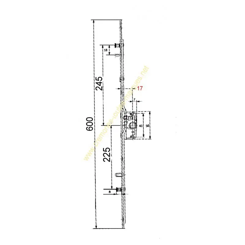 Spécialement conçue pour les menuiseries coulissantes, la Crémone ROTO Axe 17 mm H 600 offre un système de verrouillage fiable et sécurisé. Avec son axe de 17 mm, cette crémone est idéale pour les portes-fenêtres et les fenêtres coulissantes, garantissant une fermeture fluide et un fonctionnement optimal.