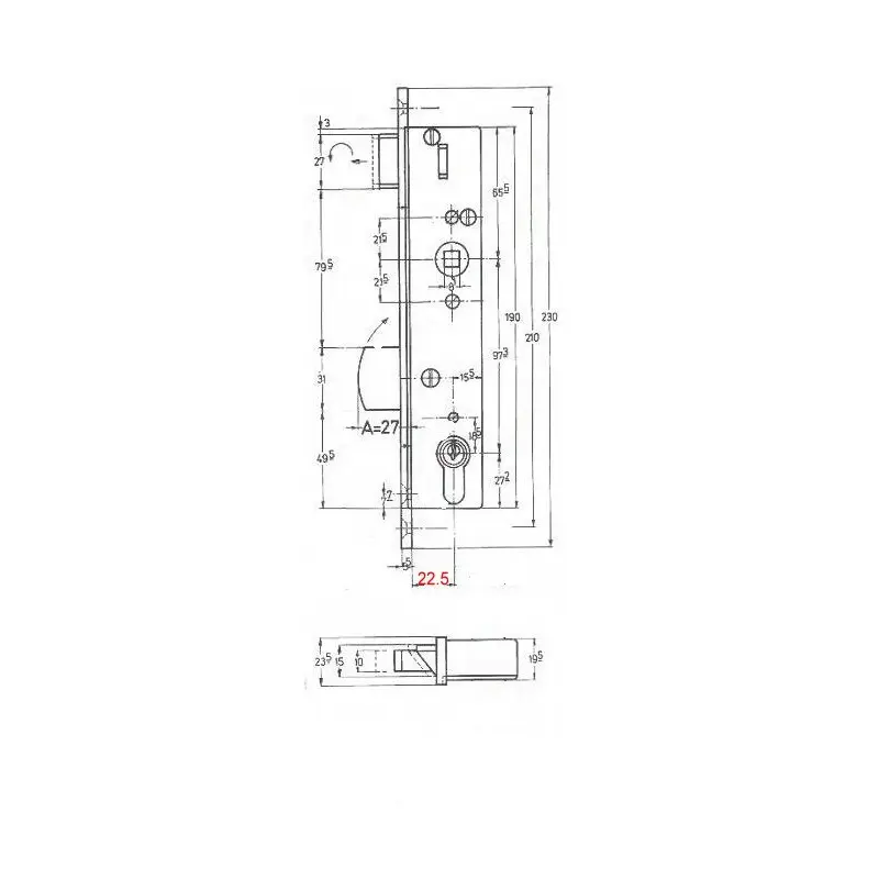 serrure porte alu SOBINCO / REYNOLDS ALUMINIUM axe 22.5 ou 27.5